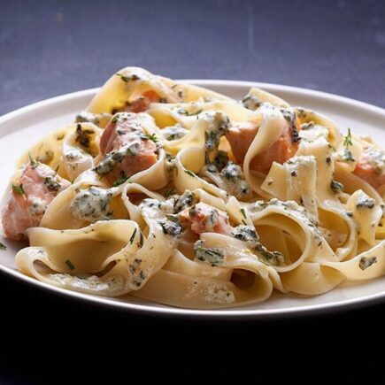 Cremet båndpasta med laks